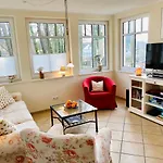 Die Neue Villa Ernst - Ferienwohnung 3 verfügt über einen Wohnbereich, einen Balkon und eine Sitzecke und bietet einen Blick auf den Garten. Hier gibt es zudem 1 Bad. Ein Haartrockner und Handtücher sind ebenfalls vorhanden.